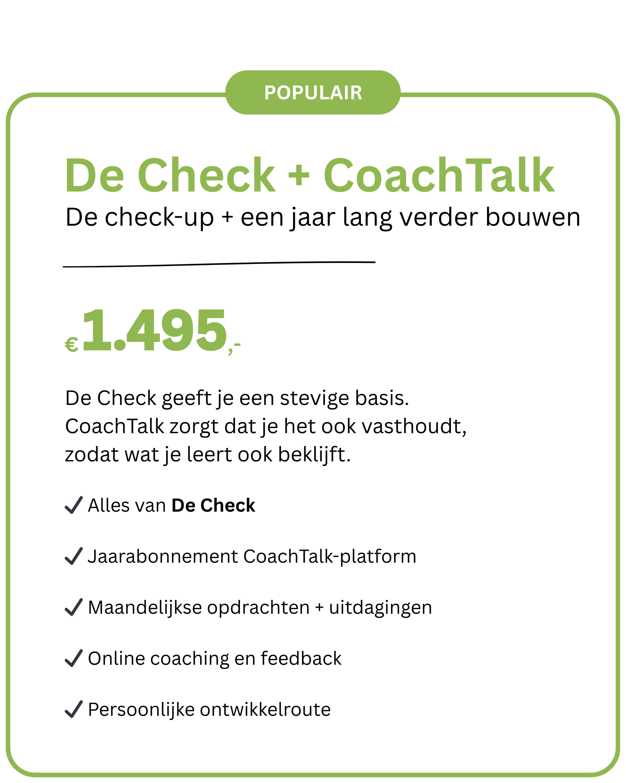 Wil je daarna blijven groeien? Dan bouw je met CoachTalk een jaar lang verder op een online coachingsplatform.