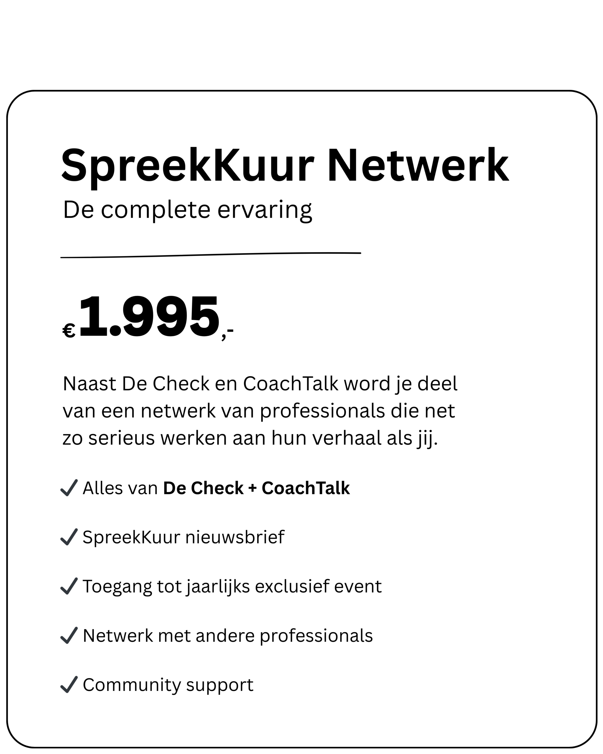 En voor wie ook wil leren van anderen: het SpreekKuur Netwerk geeft je toegang tot een community van gelijkgestemden én een exclusief jaarlijks evenement.